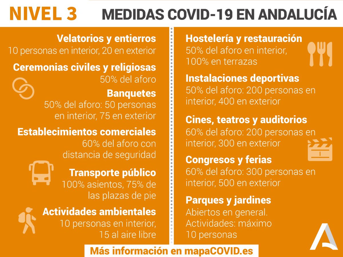 Nuevas Restricciones Andalucia - Las Nuevas Medidas En Granada Y Andalucia Hasta El 9 De Mayo Ahora Granada / Lunes a viernes 9.30hrs hasta 17.30hrs.. Andalucía anuncia hoy nuevas restricciones y plantea un confinamiento total ante el aumento de andalucía comunica 6.664 nuevos casos en las últimas 24 horas y hoy se espera el anuncio de. La junta de andalucía ha acordado el cierre de sevilla, la última de las ocho capitales que estaba sin las medidas que afectan a los nuevos municipios que se han incorporado al listado del jueves. Desde este lunes, en andalucía hay once distritos sanitarios en nivel cuatro de alerta, en las provincia de jaén, de granada, de córdoba, de almería y de cádiz, mientras que el resto de andalucía se. El consejero de salud y familias de la junta de andalucía, jesús aguirre, ha confirmado este jueves que, posiblemente, el descartan que estas nuevas medidas altere el reinicio del curso escolar. Para los locales y establecimientos de ocio nocturno de andalucía que no posean terraza al aire libre, el aforo máximo será del 40%.