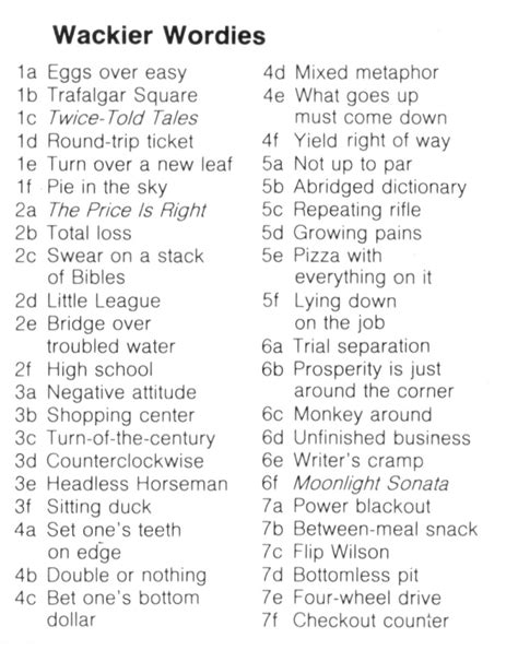 Free Printable Wacky Wordies from lh5.googleusercontent.com Our word search generator uses a basic word filter to prevent the accidental, random. Notice the links below to print out a clear pdf copy. Printable worksheets in these printable puzzles, match the word segments to make words related to a theme. If you're a fan of wacky word puzzles, you need to try these zany zigzag puzzlers! Browse our themed puzzles, including word searches, word sudoku, word wheels, word scramble and more. Our printable puzzles are 100% free to use and download. Free cvc word puzzle that includes 16 short vowel cvc words. If you are like us, you probably enjoy putting pencil to page.